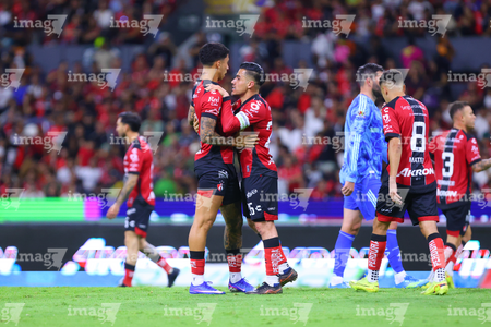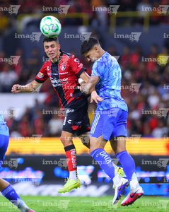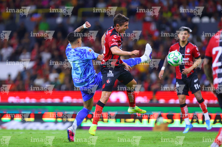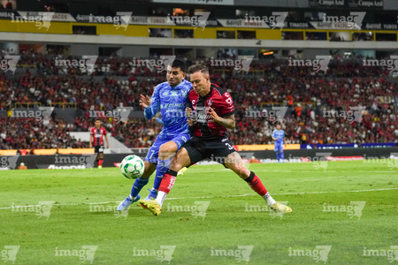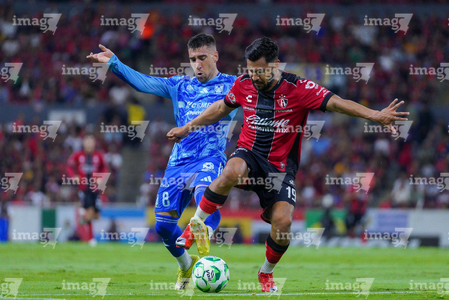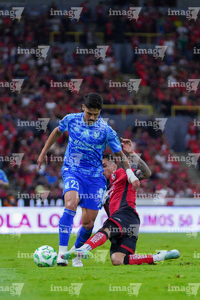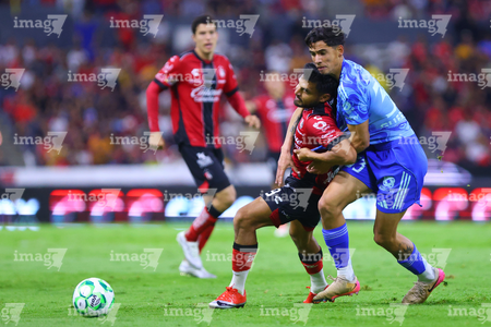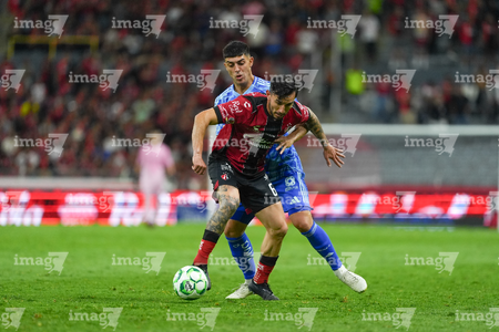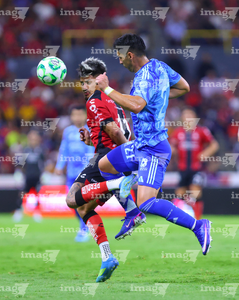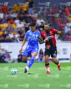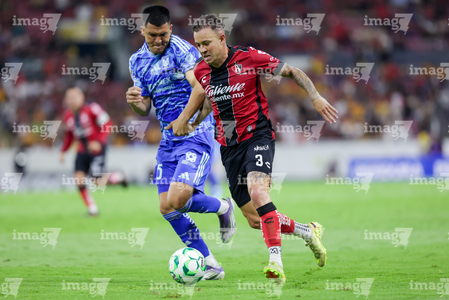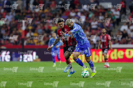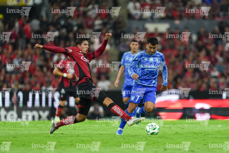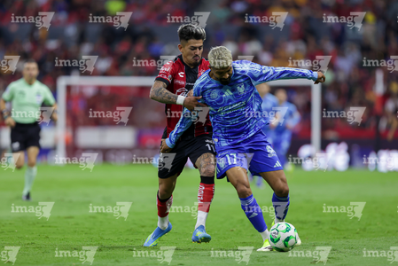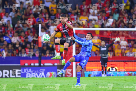 Guadalajara, Jalisco, 22 de abril de 2026. Rómulo Zwarg y Eduardo Aguirre, durante el partido correspondiente a la jornada 16 del torneo Clausura 2026 de la Liga BBVA MX, entre los Rojinegros del Atlas y los Tigres de la UANL, realizado en el estadio Jalisco. Foto: Imago7/ Juan Carlos Cubeyro.