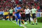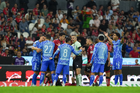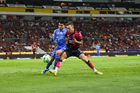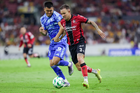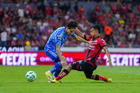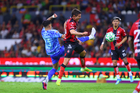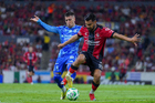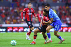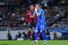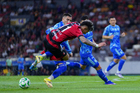 Guadalajara, Jalisco, 22 de abril de 2026. Manuel Capasso y Ángel Correa, durante el partido correspondiente a la jornada 16 del torneo Clausura 2026 de la Liga BBVA MX, entre los Rojinegros del Atlas y los Tigres de la UANL, realizado en el estadio Jalisco. Foto: Imago7/ Juan Carlos Cubeyro.