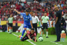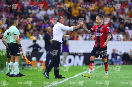 Guadalajara, Jalisco, 22 de abril de 2026. Diego Cocca, director técnico y Gustavo Ferrareis tras reibir tarjeta roja de expulsión, durante el partido correspondiente a la jornada 16 del torneo Clausura 2026 de la Liga BBVA MX, entre los Rojinegros del Atlas y los Tigres de la UANL, realizado en el estadio Jalisco. Foto: Imago7/ Juan Carlos Cubeyro.