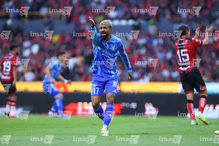 Guadalajara, Jalisco, 22 de abril de 2026. Rodrigo Aguirre en reclamo, durante el partido correspondiente a la jornada 16 del torneo Clausura 2026 de la Liga BBVA MX, entre los Rojinegros del Atlas y los Tigres de la UANL, realizado en el estadio Jalisco. Foto: Imago7/ Juan Carlos Cubeyro.