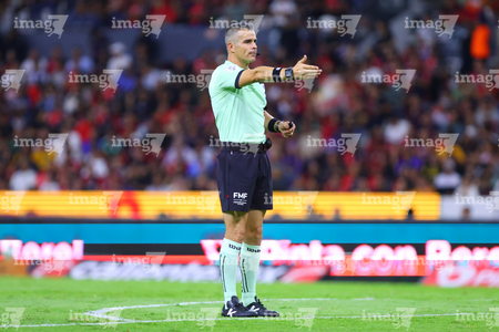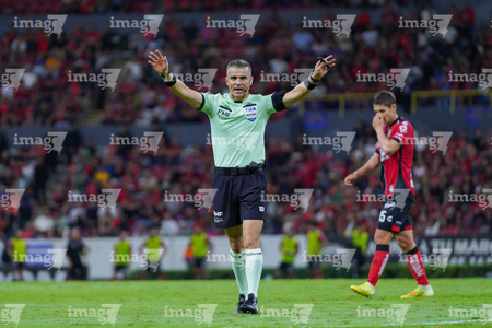 Guadalajara, Jalisco, 22 de abril de 2026. Fernando Hernández, árbitro central, durante el partido correspondiente a la jornada 16 del torneo Clausura 2026 de la Liga BBVA MX, entre los Rojinegros del Atlas y los Tigres de la UANL, realizado en el estadio Jalisco. Foto: Imago7/ Juan Carlos Cubeyro.