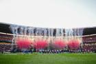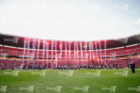 Guadalajara, Jalisco, 22 de abril de 2026. Protocolo, durante el partido correspondiente a la jornada 16 del torneo Clausura 2026 de la Liga BBVA MX, entre los Rojinegros del Atlas y los Tigres de la UANL, realizado en el estadio Jalisco. Foto: Imago7/ Juan Carlos Cubeyro.
