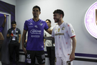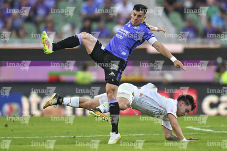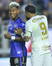 Mazatlán, Sinaloa, 22 de abril de 2026. Facundo Almada y Ricardo Rodríguez, durante el partido correspondiente a la jornada 16 del torneo Clausura 2026 de la Liga BBVA MX, entre los Cañoneros del Mazatlán FC y los Diablos Rojos del Toluca, realizado en el estadio El Encanto. Foto: Imago7/ Etzel Espinosa