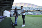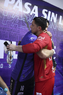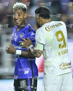 Mazatlán, Sinaloa, 22 de abril de 2026. Edgar Bárcenas y Alexis Vega, durante el partido correspondiente a la jornada 16 del torneo Clausura 2026 de la Liga BBVA MX, entre los Cañoneros del Mazatlán FC y los Diablos Rojos del Toluca, realizado en el estadio El Encanto. Foto: Imago7/ Etzel Espinosa