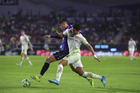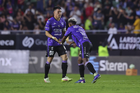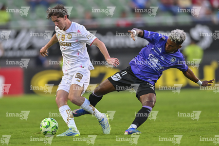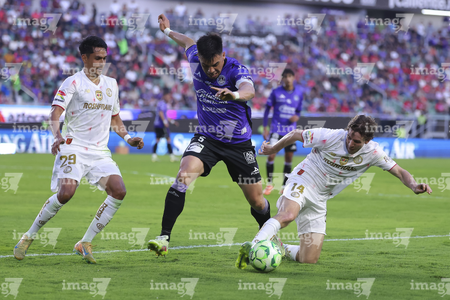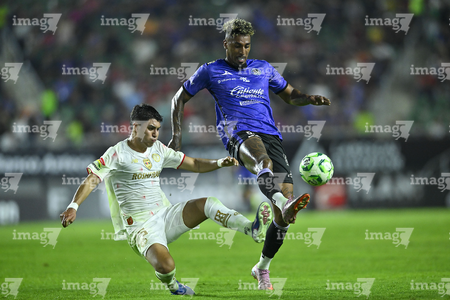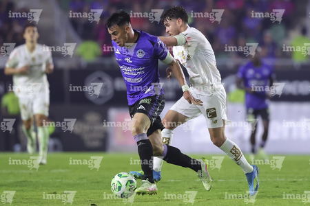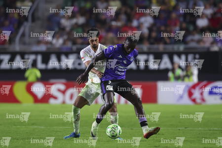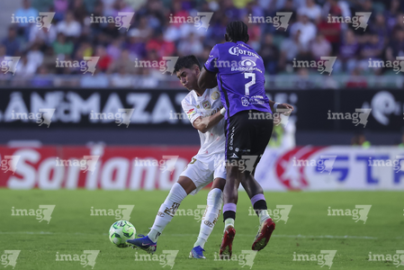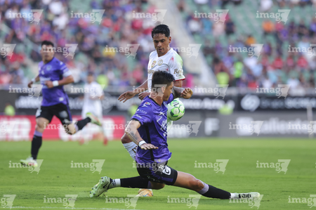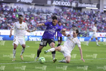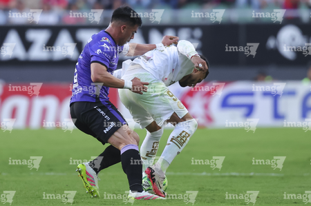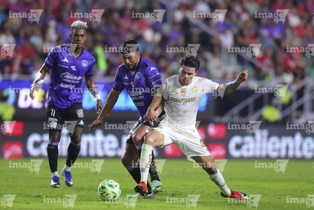 Mazatlán, Sinaloa, 22 de abril de 2026. Facundo Almada y Franco Rossi, durante el partido correspondiente a la jornada 16 del torneo Clausura 2026 de la Liga BBVA MX, entre los Cañoneros del Mazatlán FC y los Diablos Rojos del Toluca, realizado en el estadio El Encanto. Foto: Imago7/ Etzel Espinosa