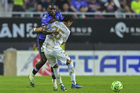 Mazatlán, Sinaloa, 22 de abril de 2026. Angel Saavedra (D), durante el partido correspondiente a la jornada 16 del torneo Clausura 2026 de la Liga BBVA MX, entre los Cañoneros del Mazatlán FC y los Diablos Rojos del Toluca, realizado en el estadio El Encanto. Foto: Imago7/ Rafael Vadillo