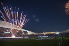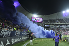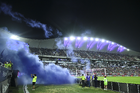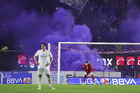Mazatlán, Sinaloa, 22 de abril de 2026. Pirotecnia durante el partido correspondiente a la jornada 16 del torneo Clausura 2026 de la Liga BBVA MX, entre los Cañoneros del Mazatlán FC y los Diablos Rojos del Toluca, realizado en el estadio El Encanto. Foto: Imago7/ Etzel Espinosa