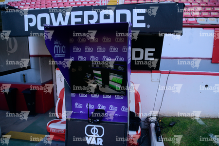 Aguascalientes, Aguascalientes, 22 de abril de 2026. Cabina del sistema de video asistente del árbitro VAR, durante el partido correspondiente a la jornada 16 del torneo Clausura 2026 de la Liga BBVA MX, entre los Rayos del Necaxa y las Chivas Rayadas del Guadalajara, realizado en el estadio Victoria. Foto: Imago7/ Pablo Ramírez