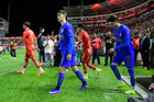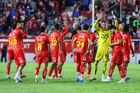 Aguascalientes, Aguascalientes, 22 de abril de 2026. Jugadores de Necaxa, durante el partido correspondiente a la jornada 16 del torneo Clausura 2026 de la Liga BBVA MX, entre los Rayos del Necaxa y las Chivas Rayadas del Guadalajara, realizado en el estadio Victoria. Foto: Imago7/ Pablo Ramírez