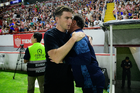 Aguascalientes, Aguascalientes, 22 de abril de 2026. Martín Varini, director técnico y Gabriel Milito, director técnico, durante el partido correspondiente a la jornada 16 del torneo Clausura 2026 de la Liga BBVA MX, entre los Rayos del Necaxa y las Chivas Rayadas del Guadalajara, realizado en el estadio Victoria. Foto: Imago7/ Pablo Ramírez