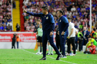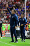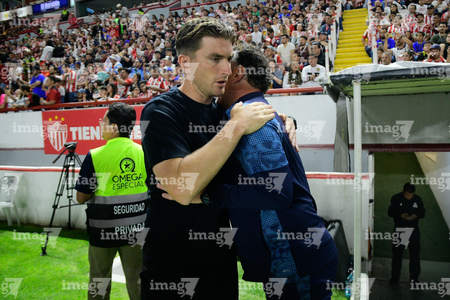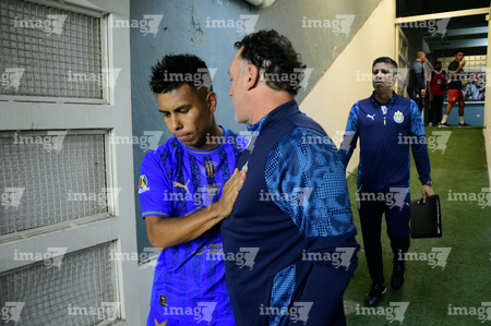 Aguascalientes, Aguascalientes, 22 de abril de 2026. Efraín Álvarez y Gabriel Milito, director técnico, durante el partido correspondiente a la jornada 16 del torneo Clausura 2026 de la Liga BBVA MX, entre los Rayos del Necaxa y las Chivas Rayadas del Guadalajara, realizado en el estadio Victoria. Foto: Imago7/ Pablo Ramírez