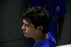 Aguascalientes, Aguascalientes, 22 de abril de 2026. Brian Gutiérrez en lamento durante el partido correspondiente a la jornada 16 del torneo Clausura 2026 de la Liga BBVA MX, entre los Rayos del Necaxa y las Chivas Rayadas del Guadalajara, realizado en el estadio Victoria. Foto: Imago7/ Pablo Ramírez