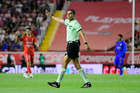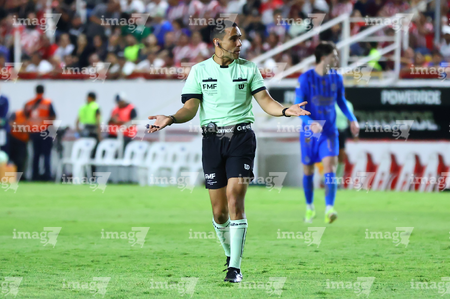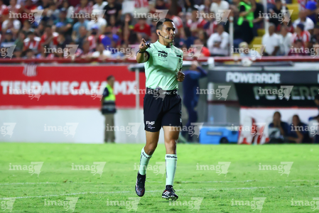 Aguascalientes, Aguascalientes, 22 de abril de 2026. Joaquin Alberto Vizcarra, árbitro central, durante el partido correspondiente a la jornada 16 del torneo Clausura 2026 de la Liga BBVA MX, entre los Rayos del Necaxa y las Chivas Rayadas del Guadalajara, realizado en el estadio Victoria. Foto: Imago7/ Pablo Ramírez