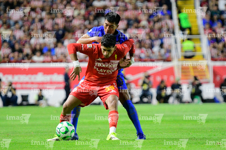 Aguascalientes, Aguascalientes, 22 de abril de 2026. Armando González y Brian Gutiérrez, durante el partido correspondiente a la jornada 16 del torneo Clausura 2026 de la Liga BBVA MX, entre los Rayos del Necaxa y las Chivas Rayadas del Guadalajara, realizado en el estadio Victoria. Foto: Imago7/ Pablo Ramírez