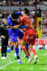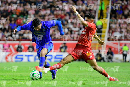 Aguascalientes, Aguascalientes, 22 de abril de 2026. Armando González y Richard Ledezma, durante el partido correspondiente a la jornada 16 del torneo Clausura 2026 de la Liga BBVA MX, entre los Rayos del Necaxa y las Chivas Rayadas del Guadalajara, realizado en el estadio Victoria. Foto: Imago7/ Pablo Ramírez