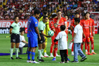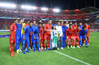 Aguascalientes, Aguascalientes, 22 de abril de 2026. Protocolo, durante el partido correspondiente a la jornada 16 del torneo Clausura 2026 de la Liga BBVA MX, entre los Rayos del Necaxa y las Chivas Rayadas del Guadalajara, realizado en el estadio Victoria. Foto: Imago7/ Pablo Ramírez