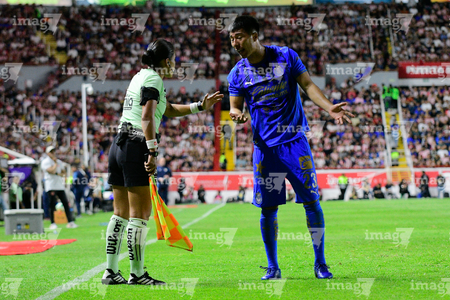 Aguascalientes, Aguascalientes, 22 de abril de 2026. Daniel Aguirre en reclamo a Jessica Fernanda Morales, árbitra asistente, durante el partido correspondiente a la jornada 16 del torneo Clausura 2026 de la Liga BBVA MX, entre los Rayos del Necaxa y las Chivas Rayadas del Guadalajara, realizado en el estadio Victoria. Foto: Imago7/ Pablo Ramírez