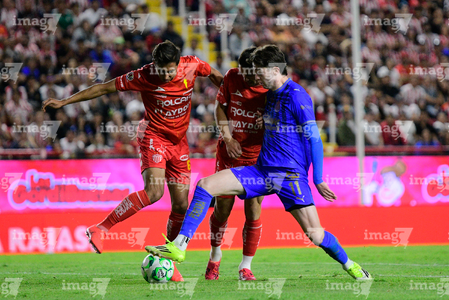 Aguascalientes, Aguascalientes, 22 de abril de 2026. Brian Gutiérrez (I), durante el partido correspondiente a la jornada 16 del torneo Clausura 2026 de la Liga BBVA MX, entre los Rayos del Necaxa y las Chivas Rayadas del Guadalajara, realizado en el estadio Victoria. Foto: Imago7/ Pablo Ramírez