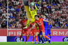 Aguascalientes, Aguascalientes, 22 de abril de 2026. Jugadores de Chivas y Jugadores de Necaxa, durante el partido correspondiente a la jornada 16 del torneo Clausura 2026 de la Liga BBVA MX, entre los Rayos del Necaxa y las Chivas Rayadas del Guadalajara, realizado en el estadio Victoria. Foto: Imago7/ Pablo Ramírez