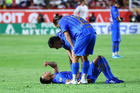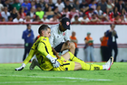 Aguascalientes, Aguascalientes, 22 de abril de 2026. Daniel Aguirre resultó lesionado, durante el partido correspondiente a la jornada 16 del torneo Clausura 2026 de la Liga BBVA MX, entre los Rayos del Necaxa y las Chivas Rayadas del Guadalajara, realizado en el estadio Victoria. Foto: Imago7/ Pablo Ramírez