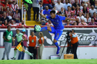 Aguascalientes, Aguascalientes, 22 de abril de 2026. Roberto Alvarado "Piojo" (I), durante el partido correspondiente a la jornada 16 del torneo Clausura 2026 de la Liga BBVA MX, entre los Rayos del Necaxa y las Chivas Rayadas del Guadalajara, realizado en el estadio Victoria. Foto: Imago7/ Pablo Ramírez