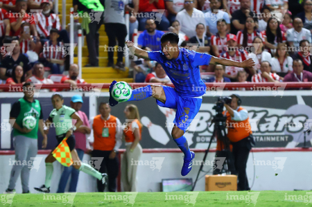Aguascalientes, Aguascalientes, 22 de abril de 2026. Daniel Aguirre, durante el partido correspondiente a la jornada 16 del torneo Clausura 2026 de la Liga BBVA MX, entre los Rayos del Necaxa y las Chivas Rayadas del Guadalajara, realizado en el estadio Victoria. Foto: Imago7/ Pablo Ramírez