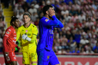 Aguascalientes, Aguascalientes, 22 de abril de 2026. Daniel Aguirre en lamento, durante el partido correspondiente a la jornada 16 del torneo Clausura 2026 de la Liga BBVA MX, entre los Rayos del Necaxa y las Chivas Rayadas del Guadalajara, realizado en el estadio Victoria. Foto: Imago7/ Pablo Ramírez