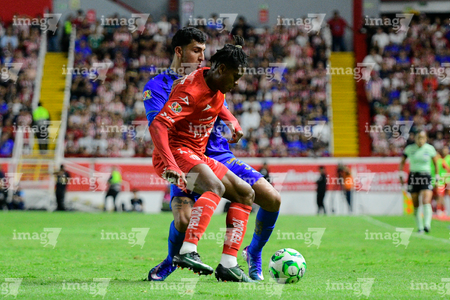 Aguascalientes, Aguascalientes, 22 de abril de 2026. Kevin Ante y Bryan González, durante el partido correspondiente a la jornada 16 del torneo Clausura 2026 de la Liga BBVA MX, entre los Rayos del Necaxa y las Chivas Rayadas del Guadalajara, realizado en el estadio Victoria. Foto: Imago7/ Pablo Ramírez