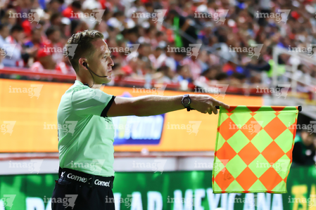 Aguascalientes, Aguascalientes, 22 de abril de 2026. Mauricio Nieto Torres, árbitro asistente, durante el partido correspondiente a la jornada 16 del torneo Clausura 2026 de la Liga BBVA MX, entre los Rayos del Necaxa y las Chivas Rayadas del Guadalajara, realizado en el estadio Victoria. Foto: Imago7/ Pablo Ramírez