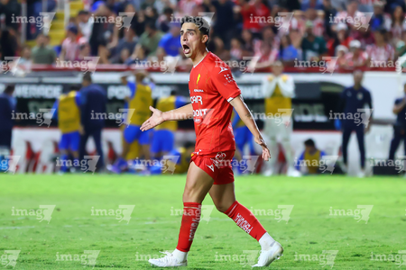 Aguascalientes, Aguascalientes, 22 de abril de 2026. Santiago Sandoval, durante el partido correspondiente a la jornada 16 del torneo Clausura 2026 de la Liga BBVA MX, entre los Rayos del Necaxa y las Chivas Rayadas del Guadalajara, realizado en el estadio Victoria. Foto: Imago7/ Pablo Ramírez