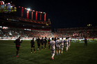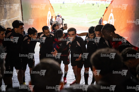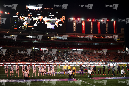 Tijuana, Baja California, 22 de abril de 2026. Protocolo, durante el partido correspondiente a la jornada 16 del torneo Clausura 2026 de la Liga BBVA MX, entre los Xolos de Tijuana y los Tuzos del Pachuca, realizado en el estadio Caliente. Foto: Imago7/Alejandro Gutiérrez Mora