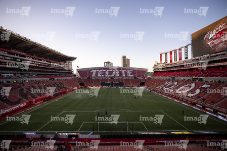Tijuana, Baja California, 22 de abril de 2026. Panorámica del estadio, durante el partido correspondiente a la jornada 16 del torneo Clausura 2026 de la Liga BBVA MX, entre los Xolos de Tijuana y los Tuzos del Pachuca, realizado en el estadio Caliente. Foto: Imago7/Alejandro Gutiérrez Mora