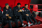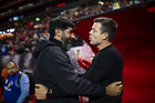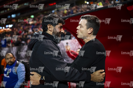 Tijuana, Baja California, 22 de abril de 2026. Sebastián Abreu, Director Técnico y Esteban Solari, director técnico, durante el partido correspondiente a la jornada 16 del torneo Clausura 2026 de la Liga BBVA MX, entre los Xolos de Tijuana y los Tuzos del Pachuca, realizado en el estadio Caliente. Foto: Imago7/Alejandro Gutiérrez Mora