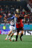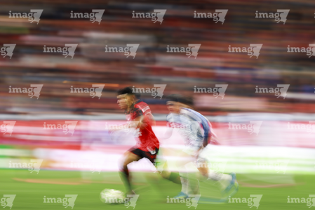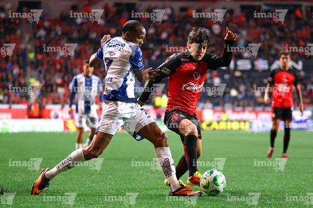 Tijuana, Baja California, 22 de abril de 2026. Luis Quiñones y Gilberto Mora, durante el partido correspondiente a la jornada 16 del torneo Clausura 2026 de la Liga BBVA MX, entre los Xolos de Tijuana y los Tuzos del Pachuca, realizado en el estadio Caliente. Foto: Imago7/ David Vega