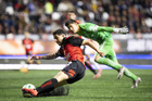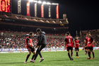Tijuana, Baja California, 22 de abril de 2026. Josef Martinez anota gol, durante el partido correspondiente a la jornada 16 del torneo Clausura 2026 de la Liga BBVA MX, entre los Xolos de Tijuana y los Tuzos del Pachuca, realizado en el estadio Caliente. Foto: Imago7/Alejandro Gutiérrez Mora