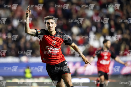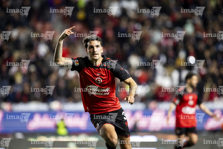 Tijuana, Baja California, 22 de abril de 2026. Diego Abreu en festejo de gol, durante el partido correspondiente a la jornada 16 del torneo Clausura 2026 de la Liga BBVA MX, entre los Xolos de Tijuana y los Tuzos del Pachuca, realizado en el estadio Caliente. Foto: Imago7/Alejandro Gutiérrez Mora