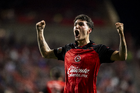 Tijuana, Baja California, 22 de abril de 2026. Josef Martínez en festejo de gol, durante el partido correspondiente a la jornada 16 del torneo Clausura 2026 de la Liga BBVA MX, entre los Xolos de Tijuana y los Tuzos del Pachuca, realizado en el estadio Caliente. Foto: Imago7/ David Vega