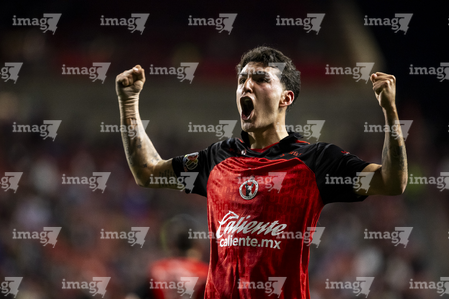 Tijuana, Baja California, 22 de abril de 2026. Gilberto Mora en festejo de gol, durante el partido correspondiente a la jornada 16 del torneo Clausura 2026 de la Liga BBVA MX, entre los Xolos de Tijuana y los Tuzos del Pachuca, realizado en el estadio Caliente. Foto: Imago7/Alejandro Gutiérrez Mora