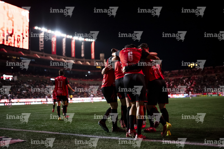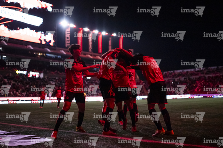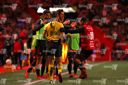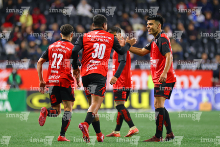 Tijuana, Baja California, 22 de abril de 2026. Jugadores de Xolos en festejo de gol, durante el partido correspondiente a la jornada 16 del torneo Clausura 2026 de la Liga BBVA MX, entre los Xolos de Tijuana y los Tuzos del Pachuca, realizado en el estadio Caliente. Foto: Imago7/Alejandro Gutiérrez Mora