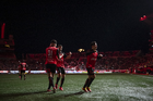 Tijuana, Baja California, 22 de abril de 2026. Jugadores de Pachuca, durante el partido correspondiente a la jornada 16 del torneo Clausura 2026 de la Liga BBVA MX, entre los Xolos de Tijuana y los Tuzos del Pachuca, realizado en el estadio Caliente. Foto: Imago7/ David Vega