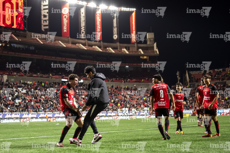 Tijuana, Baja California, 22 de abril de 2026. Jugadores de Xolos, durante el partido correspondiente a la jornada 16 del torneo Clausura 2026 de la Liga BBVA MX, entre los Xolos de Tijuana y los Tuzos del Pachuca, realizado en el estadio Caliente. Foto: Imago7/ David Vega