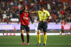 Tijuana, Baja California, 22 de abril de 2026. Enner Valencia es expulsado, durante el partido correspondiente a la jornada 16 del torneo Clausura 2026 de la Liga BBVA MX, entre los Xolos de Tijuana y los Tuzos del Pachuca, realizado en el estadio Caliente. Foto: Imago7/Alejandro Gutiérrez Mora