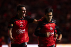 Tijuana, Baja California, 22 de abril de 2026. Josef Martínez e Iván Tona en festejo de gol, durante el partido correspondiente a la jornada 16 del torneo Clausura 2026 de la Liga BBVA MX, entre los Xolos de Tijuana y los Tuzos del Pachuca, realizado en el estadio Caliente. Foto: Imago7/ David Vega