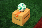 Tijuana, Baja California, 22 de abril de 2026. Balón de futbol Voit Aereus sobre caja de Amazon, durante el partido correspondiente a la jornada 16 del torneo Clausura 2026 de la Liga BBVA MX, entre los Xolos de Tijuana y los Tuzos del Pachuca, realizado en el estadio Caliente. Foto: Imago7/ David Vega