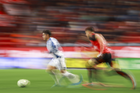 Tijuana, Baja California, 22 de abril de 2026. Oussama Idrissi, durante el partido correspondiente a la jornada 16 del torneo Clausura 2026 de la Liga BBVA MX, entre los Xolos de Tijuana y los Tuzos del Pachuca, realizado en el estadio Caliente. Foto: Imago7/ David Vega