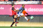 Tijuana, Baja California, 22 de abril de 2026. Sergio Rodríguez e Iván Tona, durante el partido correspondiente a la jornada 16 del torneo Clausura 2026 de la Liga BBVA MX, entre los Xolos de Tijuana y los Tuzos del Pachuca, realizado en el estadio Caliente. Foto: Imago7/ David Vega