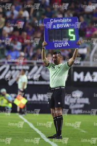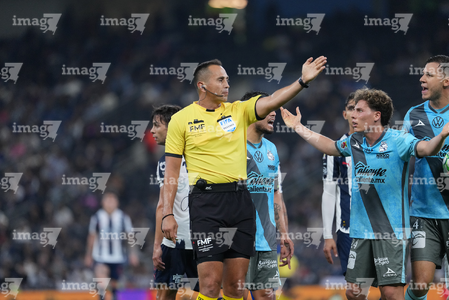 Guadalupe, Nuevo León, 21 de abril de 2026. Luis Enrique Santander, árbitro central, durante el partido correspondiente a la jornada 16 del torneo Clausura 2026 de la Liga BBVA MX, entre los Rayados del Monterrey y el Club Puebla, realizado en el estadio BBVA. Foto: Imago7/