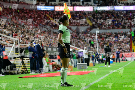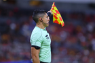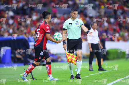 Guadalajara, Jalisco, 22 de abril de 2026. Jonathan Gómez, árbitro asistente, durante el partido correspondiente a la jornada 16 del torneo Clausura 2026 de la Liga BBVA MX, entre los Rojinegros del Atlas y los Tigres de la UANL, realizado en el estadio Jalisco. Foto: Imago7/ Juan Carlos Cubeyro.