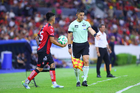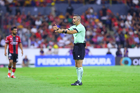 Guadalajara, Jalisco, 22 de abril de 2026. Fernando Hernández, árbitro central, durante el partido correspondiente a la jornada 16 del torneo Clausura 2026 de la Liga BBVA MX, entre los Rojinegros del Atlas y los Tigres de la UANL, realizado en el estadio Jalisco. Foto: Imago7/ Juan Carlos Cubeyro.