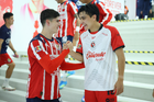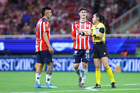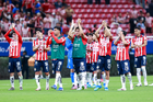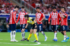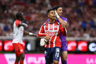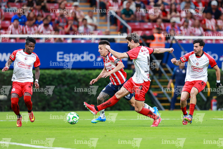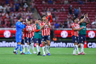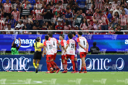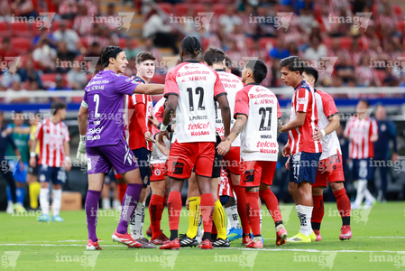 Zapopan, Jalisco, 25 de abril de 2026. Jugadores de Chivas, durante el partido correspondiente a la jornada 17 del torneo Clausura 2026 de la Liga BBVA MX, entre las Chivas Rayadas del Guadalajara y los Xolos de Tijuana, realizado en el estadio Akron. Foto: Imago7/ Juan Carlos Cuebeyro